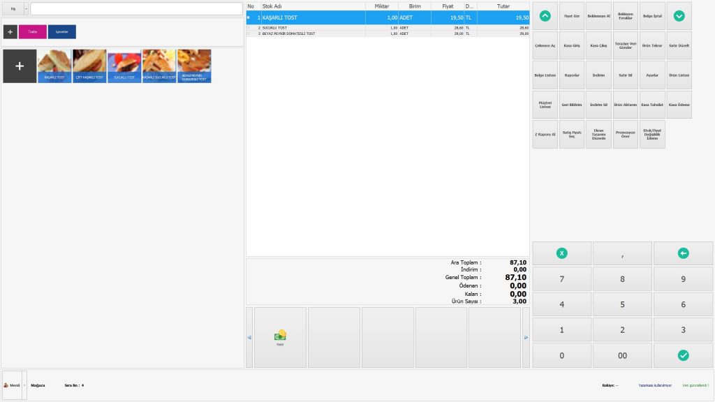Satış için seçtiğiniz ya da barkod okuyucu ile okuttuğunuz ürünün miktarını, ürün listesine girmeden hızlıca artırıp azaltabilirsiniz. Ayrıca sistemde tanımlı ürünleri ve müşterileri kod, ad veya barkoda göre arayıp dilediğiniz bilgiye hızlıca erişebilirsiniz.